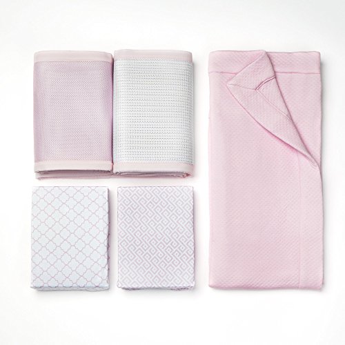 BreathableBaby Deluxe Cable Weave 4 Piece Bedding Set, Pink