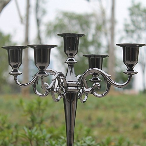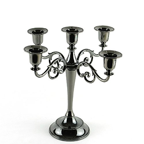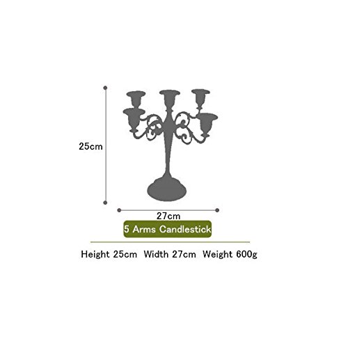 Metal Candle Holder 5-arms Candle Stand 27cm Tall Wedding Event Candelabra Candle Stick (black)