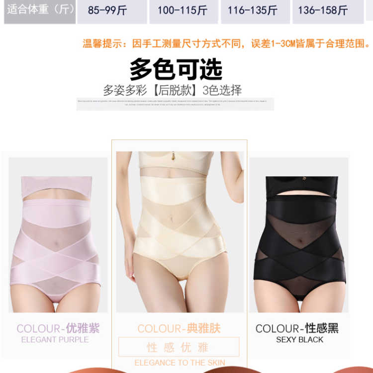 收腹效果紧而不勒;提臀,翘出蜜桃臀;紧致瘦腿打造纤纤细腿;薄款无痕束腰享瘦,营造迷人小蛮腰;强效塑身,不卷边。建议两件换着,效果好,码数建议: M(85-99) L(100-115) XL(116-135)XXL(136-158)