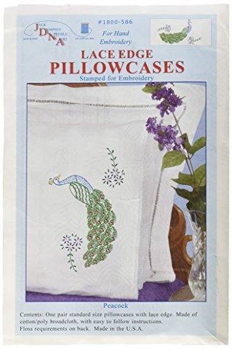 Jack Dempsey Stamped Pillowcases with White Lace Edge, Peacock, 2-Pack