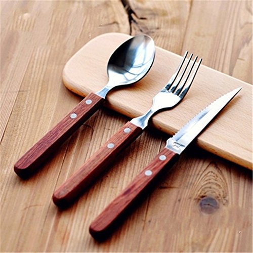 -. Title : 木製ハンドルステンレス食器カトラリー食器フォークステーキレトロキッチンカッタースプーン食器セット