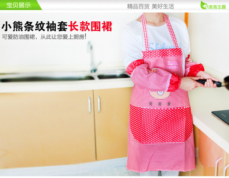 品名:时尚卡通小熊条纹围裙袖套一套装