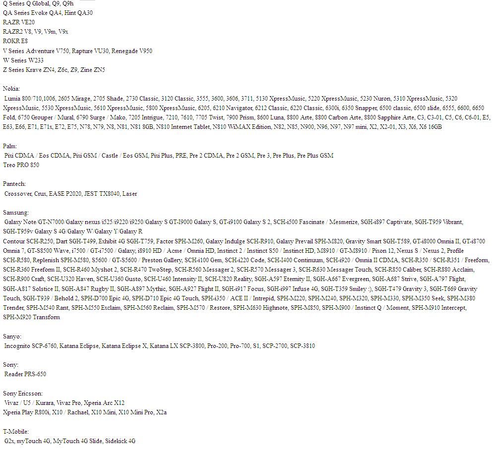 Devices that are using MICRO USB (view list of model here & here)