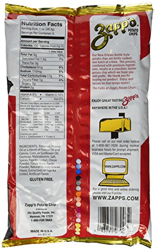 -. Binding : Misc. -. Brand : Zapp's Potato Chips -. EAN : 0083791070032 -. Feature : Zapp's Potato Chips / New Orleans Kettle Style Chips / Spicy Cajun Crawtators - 2 x 5 oz / cholesterol-free food / order a quantity of 2 or more and your order will be shipped with expedited shipping for fast delivery -. PackageQuantity : 2 -. ProductGroup : Grocery -. ProductTypeName : GROCERY -. Title : Zapp's Potato Chips - NEW ORLEANS KETTLE STYLE SPICY CAJUN CRAWTATORS - 2 x 5 oz -. UPC : 083791070032