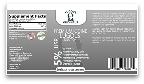Lugols Originals 5%Iodine deficiency has increased more than FOURFOLD in the past 40 years Nearly 74% of normal, "healthy" adults may no longer consume enough . This essential trace element is needed to make thyroid hormones. These regulate metabolism, contribute to cognitive function and help kill disease-causing pathogens in the body. Fortunately, LUGOLS ORIGINALS Premium Solution makes it easy to maintain healthy levels and improve your body's overall health. One solution for multiple health concerns is one of the body's best catalysts for resistance, repair and recovery. All blood in the body passes through the thyroid gland every 17 minutes. Since this gland has an affinity for , the circulatory system gets a healthy cleansing with every cycle. Bacteria and pathogens are destroyed, which enhances the immune system. Free radicals are neutralized to promote healthy cellular function, and metabolism is boosted. This directly impacts energy levels, weight management, and healthy skin and hair. The best proof of 's cleansing effect is the fact that it is used globally to render contaminated water safe to drink. Adding 3-6 drops of LUGOLS ORIGINALS Premium Solution to a liter of river water will kill bacteria and make it potable. Locally mined for your safety LUGOLS ORIGINALS Premium Solution contains no kelp, shellfish or foreign products. All ingredients come from U.S. mines, and our product is manufactured in the U.S., for your peace of mind. Your satisfaction is guaranteed, or we will refund your purchase price, no questions asked. To maintain a healthy balance of this life-giving element, add LUGOLS ORIGINALS Premium Solution to your cart today. 0 |