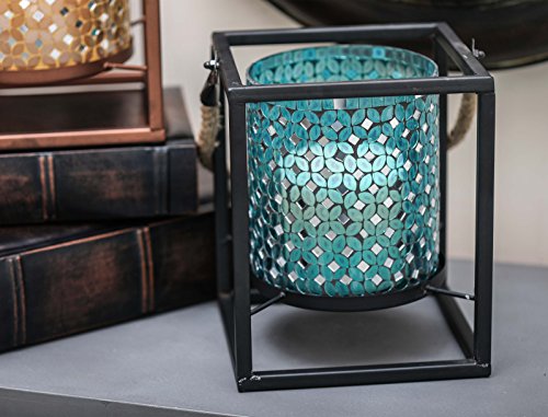 Deco 79 Metal Turquoise Mosaic Lantern, 8 by 19-Inch