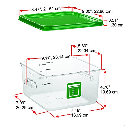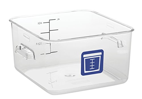 Rubbermaid Commercial Products 1980233 Square Plastic Food Storage Container, Blue Label, 4 quart, Clear
