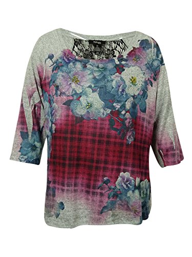 Product DescriptionThis shirt features three-quarter sleeves, embellishment on front, and lace-trimming on back.0