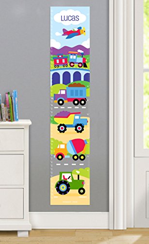 -. Title : Trains Planes and Trucks Personalized Wall Decal Growth Chart By Olive Kids