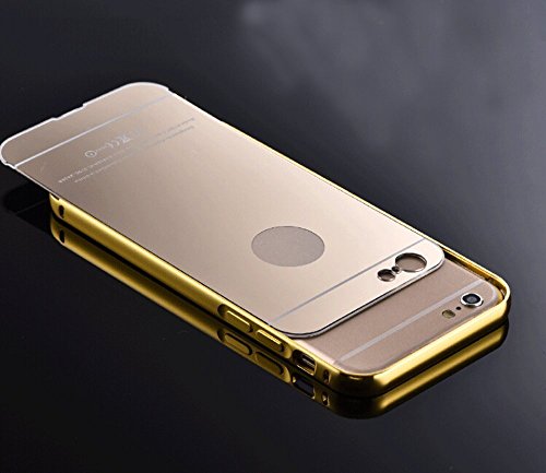 iPhone 5, iPhone 5S, iPhone SE Case, AMASELL Luxury Mirror Acrylic PC Back Cover Case Ultra Slim Aluminum Metal Bumper Frame for iPhone 5 5S SE, Gold - Mirror