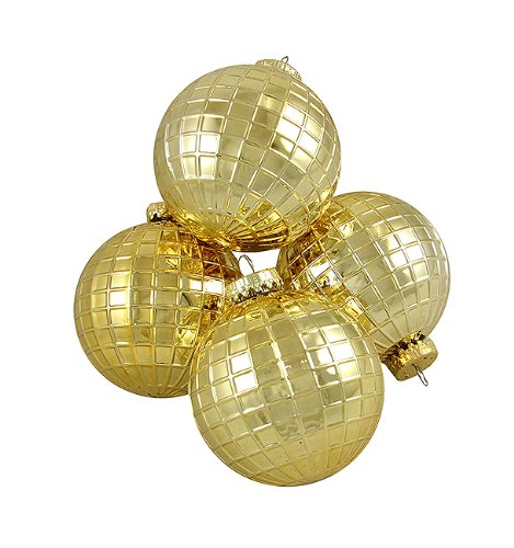Barcana 4 Count Shiny Gold Disco Shatterproof Christmas Ball Ornaments, 2.75"