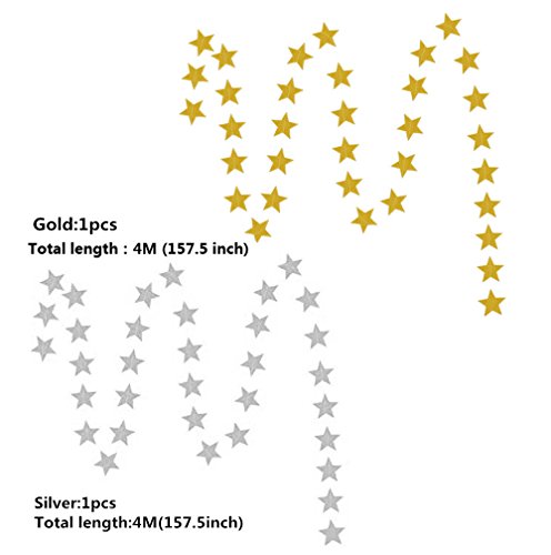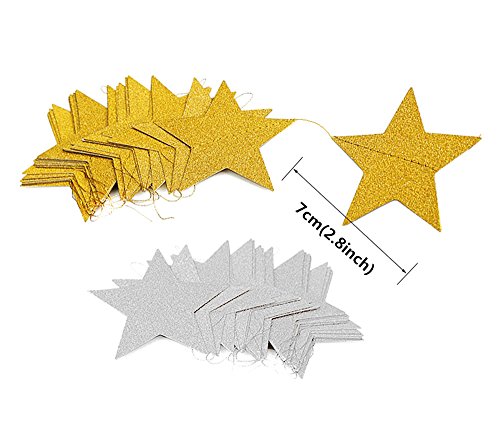 Fecedy 2pcs Gold Silver Sparkling Star Garland Bunting for Baby shower,Wedding Party 13 feet