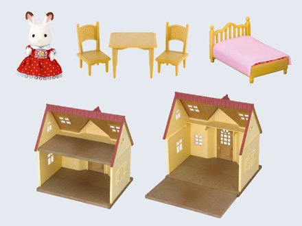 빨간 지붕이 멋진,초콜릿 토끼 패밀리가 사는 집입니다.?초콜릿 토끼의 소녀와,베드,테이블,의자가 들어 가 있어 곧바로 놀 수 있는 때문에,처음인 친구에 추천의 집입니다.
