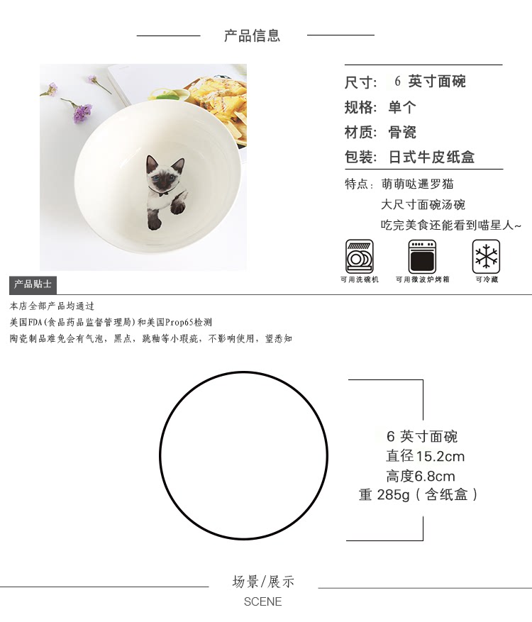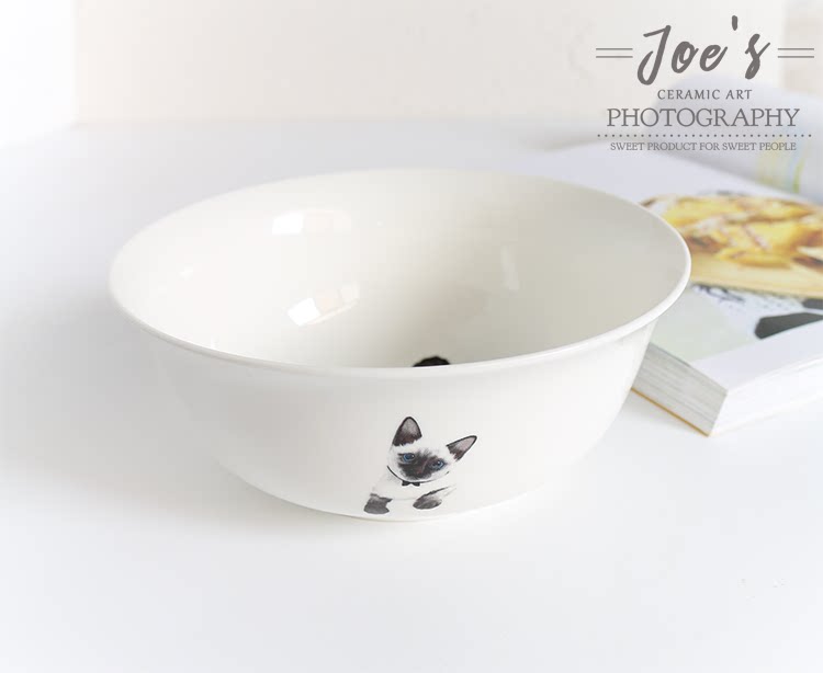 暹罗猫创意汤碗泡面碗大碗沙拉碗大号家用陶瓷日式米饭碗拉面圆碗