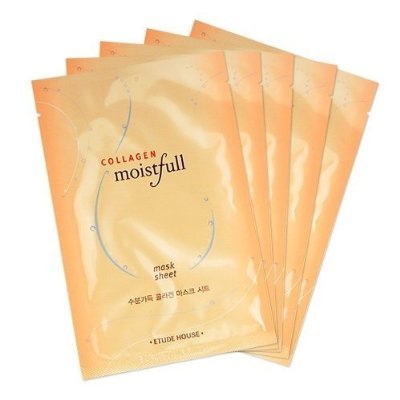 -. Feature : 5 sheet / Etude House Collagen Moistfull Mask Sheet steeps skin in moisture-enriched essence to brighten up complexion and leave skin velvety soft and perfectly hydrated. / Close-fitting sheet masks deliver moisture right where it's most needed, quenching skin thirst and reversing the appearance of dry and lackluster skin. / It adheres to supply facial moisture and improve elasticity. Collagen improves dermal structure and retains moisture. / * collagen content 330ppm