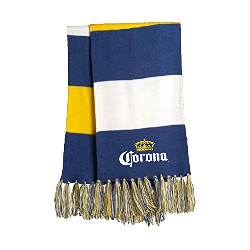 Product Description Officially licensed striped Corona scarf. Made from 100% acrylic material, this scarf measures 61' in x 8' in and features the "Corona" logo. Comes in navy blue with white and yellow stripes. 0