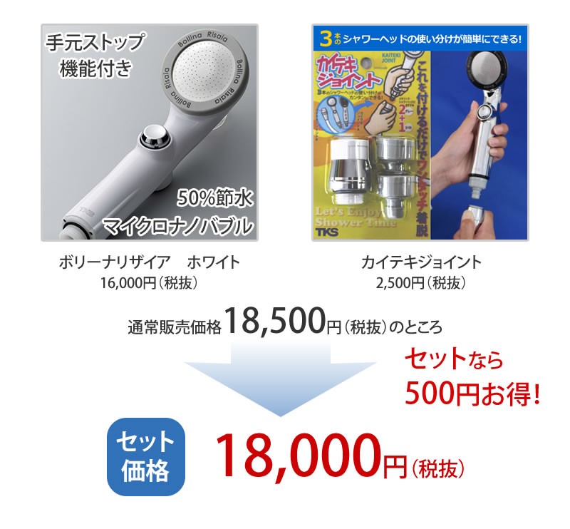 マイクロナノバブルシャワーヘッド ボリーナリザイア ホワイト TK-7150とカイテキジョイント TK-2011のセット