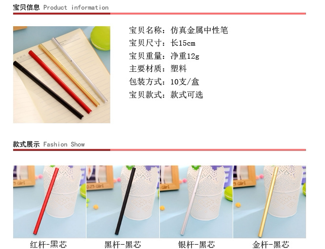 金属感中性笔简约水笔签字笔水性笔黑色笔0.5mm 学生文具学习用品