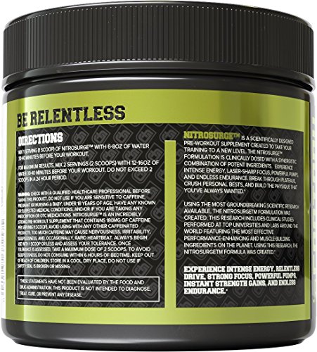 -. Title : NITROSURGE Pre Workout Supplement - Endless Energy, More Strength, Sharp Focus, & Intense Pumps - Nitric Oxide Booster & Preworkout Energy Powder - 30 Serving, Cherry Limeaide ( 8.5 oz)