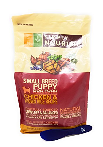 Simply Nourish Small Breed Puppy Dog Food - Chicken and Brown Rice Recipe with Especiales Cosas Mixing Spatula. One 6 (six) pound bag of dry dog food.