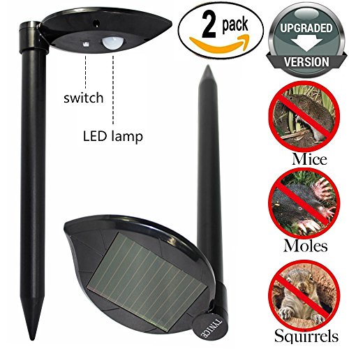 TYNICE 2XPack (UPGRADED VERSION) Sonic Solar Powered Mole Repeller With Professional LED lamp Mole Repellent that Repels Mole, Rodent, Vole, Shrews, Gopher, Snake, Pest for Outdoor Lawn Garden Yards