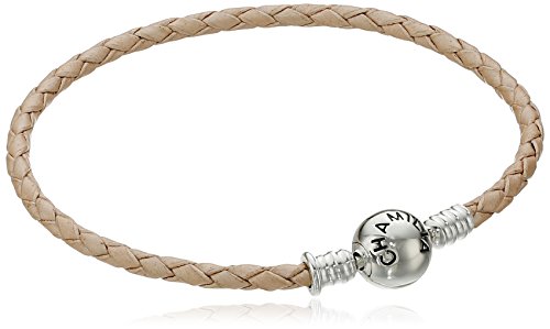 -. Feature : Classic and timeless, this Braided Leather Bracelet can be worn on its own, or filled with charms for a striking look. Crafted in blush leather, it has a sterling silver round snap Chamilia closure. / Made in China / Sterling Silver / Imported