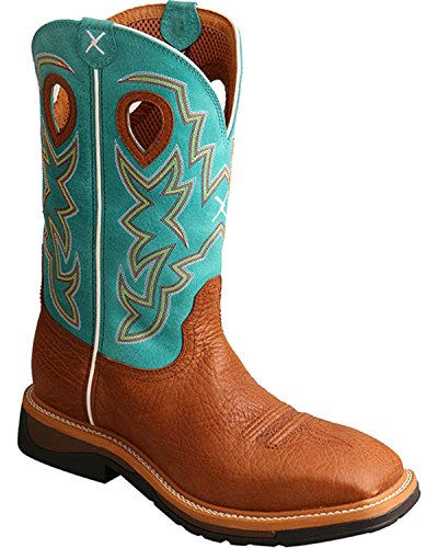 Studio : Twisted X Publisher : Twisted X Binding : Apparel Product Description Mens Twisted X Work Boots: Mens Western Work Boots. Check off your work list for the day faster in these men's lite cowboy steel toe leather work boots from Twisted X 's Work collection. Featuring Twisted X Technology that includes a machine washable, antibacterial, moisture wicking footbed, an XSD?Insole, flexible one-piece insole with integrated composite sandwich shank for maximum stability and a slip resistant 60K genuine super slab rubber outsole. They have a narrow wide square toe, a block heel and a 12 inch shaft with stitching details and tear drop pull holes. All Steel Toe Meets Exceeds?ANSI Z41 PT99 I75 C75, ASTM F2413-05 I75 C75. Twisted X run a half size large, order a half size smaller than normal. MLCS020 0