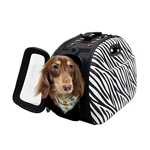 PRACTICAL AND STYLISH - The Pet Carrier comes in trendy Zebra patterns. Molded by eco-friendly EVA foam, it has the best features of both hard and soft carriers for small cat and dog, kitten and puppy. Disassembled with SMOOTH ZIPPERS.