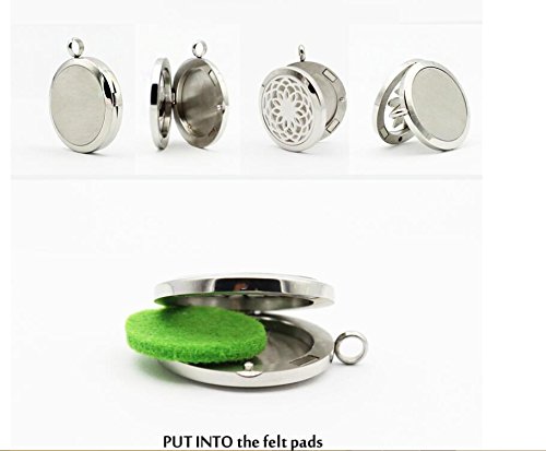 - GREAT SET:Essential oil Diffuser Necklace locket 1.18 inches diameter, 24 inches chain, 8 reusable highly absorbent refill pads in different colors. If you want more refill pads, please scroll down (see special offers), here are 50pcs refill pads, 10 colors.