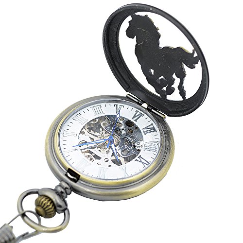 -. Title : Timeconcept 3D Horse Carving Case Steampunk Men's Mechanical Antique Pocket Watch