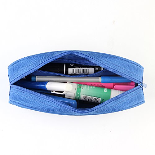 STURDY, DURABLE & EYE-CATCHING: Made of quality Nylon, with the attractive blue color, this pencil case won't go unnoticed! Washable, heavy-use with a convenient zippered closure, this pen holder is made to last!