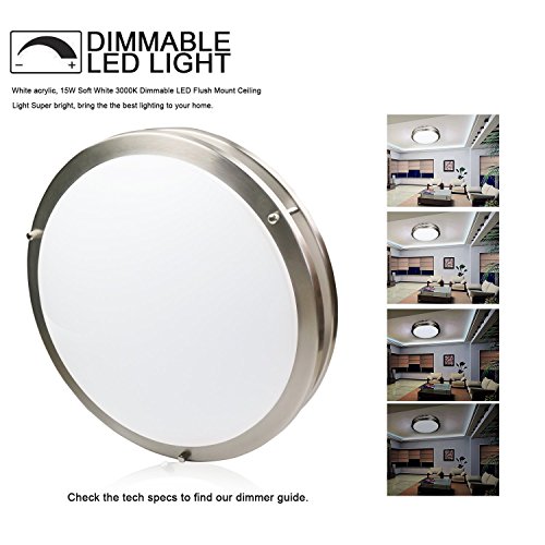 Sunnyfair LED Flush Mount Ceiling Light Brushed Nickel 12 Inch 15W 1050lm Soft White 3000K Dimmable for Living Room Bedroom Office