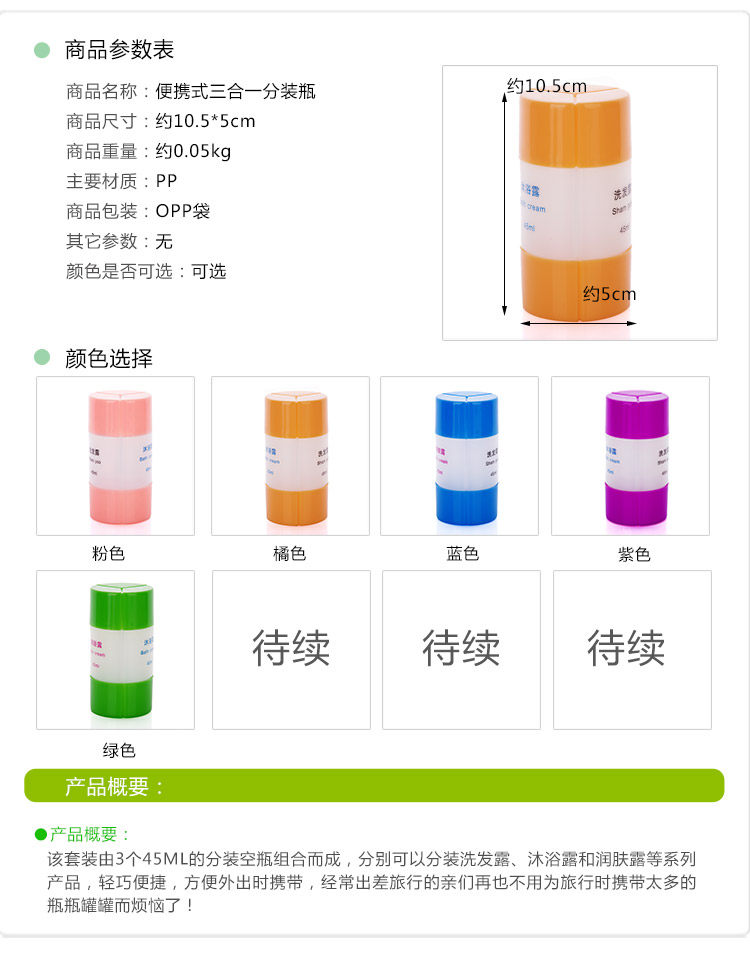 便携三合一乳液器旅行出差装洗发水沐浴露化妆品分装瓶洗漱空瓶子