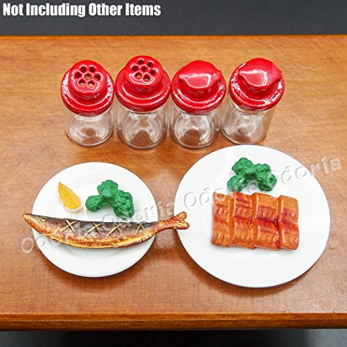 -. Feature : Scale: 1:12 Dollhouse Kitchen Miniature / Including: 4x Shaker (Not Including Other Items) / Approx. Size (LxWxH): Shaker 1x1x2 cm - 0.4x0.4x0.8 inch / High Details and Workmanship: For Dollhouse Decor of Kitchen, Diningroom, Livingromm, Restaurant, Bar etc.