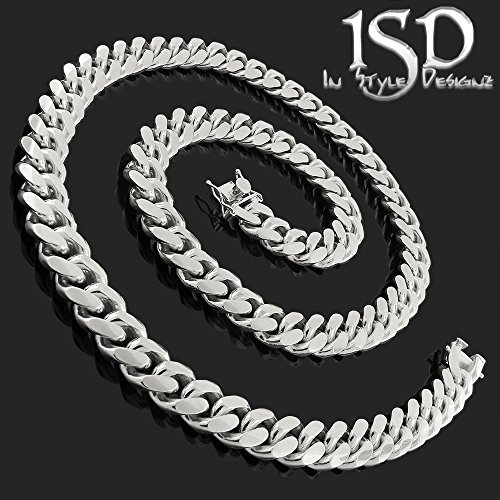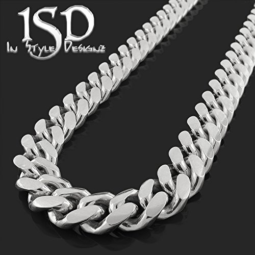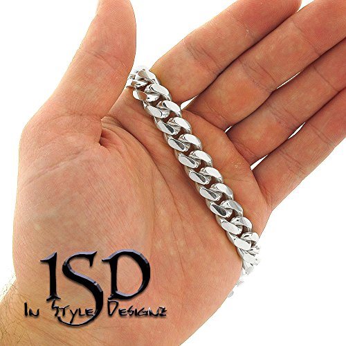 - Title : .925 Sterling Silver 12mm Solid Miami Cuban Curb Link Necklace Chain Rhodium Plated 24" - 32 (34 Inches)