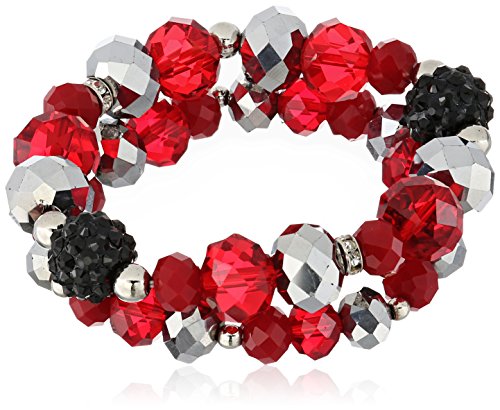 -. Title : Fashion Two-Row Faceted Glass Beaded Red Stretch Bracelet, 7"
