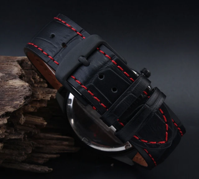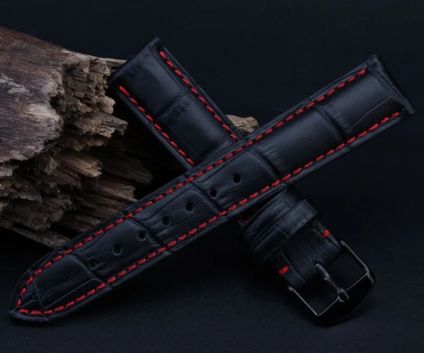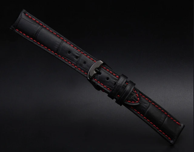 | [해외]18 미리메터 19 미리메터 20 미리메터 21 미리메터 22 미리메터 23 미리메터 24 미리메터 새로운 남성 높은 품질의 정품 가죽 블랙 악어 곡물 레드 스티치 시계 밴드 스트랩 |