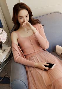 アンサンブル リブニット キャミソール フロントボタン ショート丈カーディガン 羽織り セット セットアップ シンプル