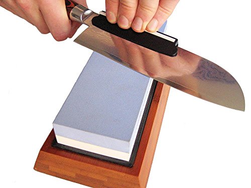 Complete Knife-Sharpening Kit: Includes dual-grit whetstone (#1000 / #6000) set in an elegant bamboo base along with angle guide that takes the guesswork out of the sharpening process.