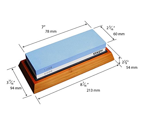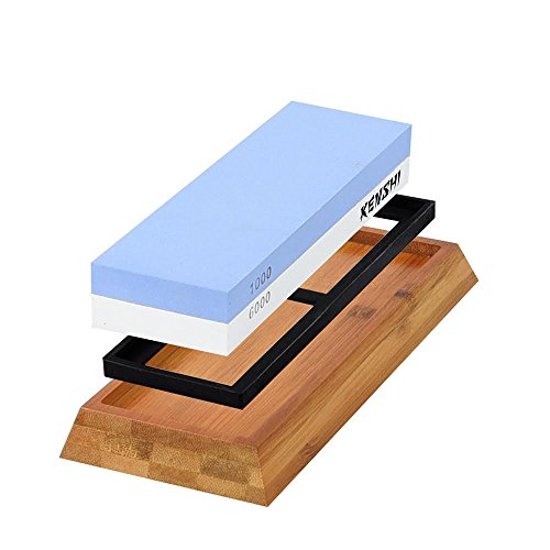 KENSHI Professional Knife Sharpening Whetstone Kit: Angle Guide, Bamboo Base, Combination 1000 / 6000 Grit. Instruction manual included