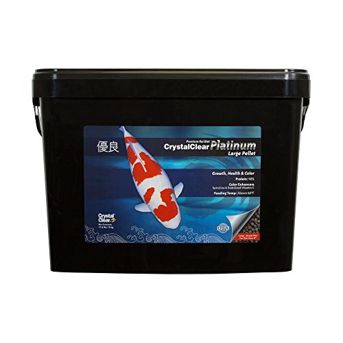 CrystalClear Platinum Large Pellet Fish Food contains a special blend of the highest quality proteins, vitamins and minerals to promote rapid growth. CrystalClear Platinum also contains Spirulina and Stabilized Vitamin C to bring out vibrant colors in koi. This floating fish food is designed for premium nutrition for growing show-quality koi. Platinum Large Pellet Fish Food contains a minimum of 40% protein and measures 5.0mm.Feature