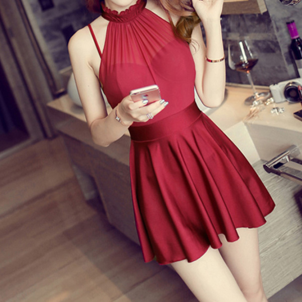 ホルターネックのエレガントなワンピースタイプの水着です☆