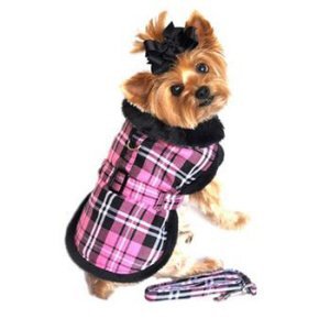 -. Binding : Misc. -. Brand : DOGGIE DESIGN -. Color : Pink -. Feature : New upgraded Hot Pink Plaid with thick ultra-plush black minky fur collar harness coat / Coat features touch fastener neck and chest closures. / It includes a matching leash and a D-ring for easy leash attachment. / Made of high quality cotton/poly blend. / We've continued the Quality with Double Box Stitch Re-enforced D-Rings attachments. -. Label : Doggie Design -. Manufacturer : Doggie Design -. PackageQuantity : 1 -. ProductGroup : Pet Products -. ProductTypeName : PET_SUPPLIES -. Publisher : Doggie Design -. Studio : Doggie Design -. Title : Hot Pink with Black Thick Fur Collar Harness Dog Coat