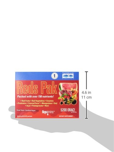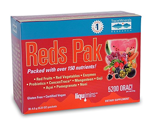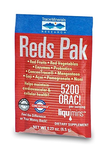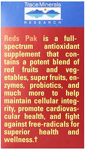 Studio : Trace Minerals Publisher : Trace Minerals Binding : Health and Beauty Product Description Reds Pak is designed to help maintain cellular integrity, promote cardiovascular health and immune system function, provide increased energy, support healthy digestion, and fight against free-radical damage. Reds Pak features antioxidant-rich super fruits like a §a , goji, and mangosteen that contain powerful phytonutrients like xanthones and polyphenols, which are potent antioxidants that fight roaming free radicals in the body for increased cellular integrity and function. Nutrients in these super fruits may also help support healthy immune 0