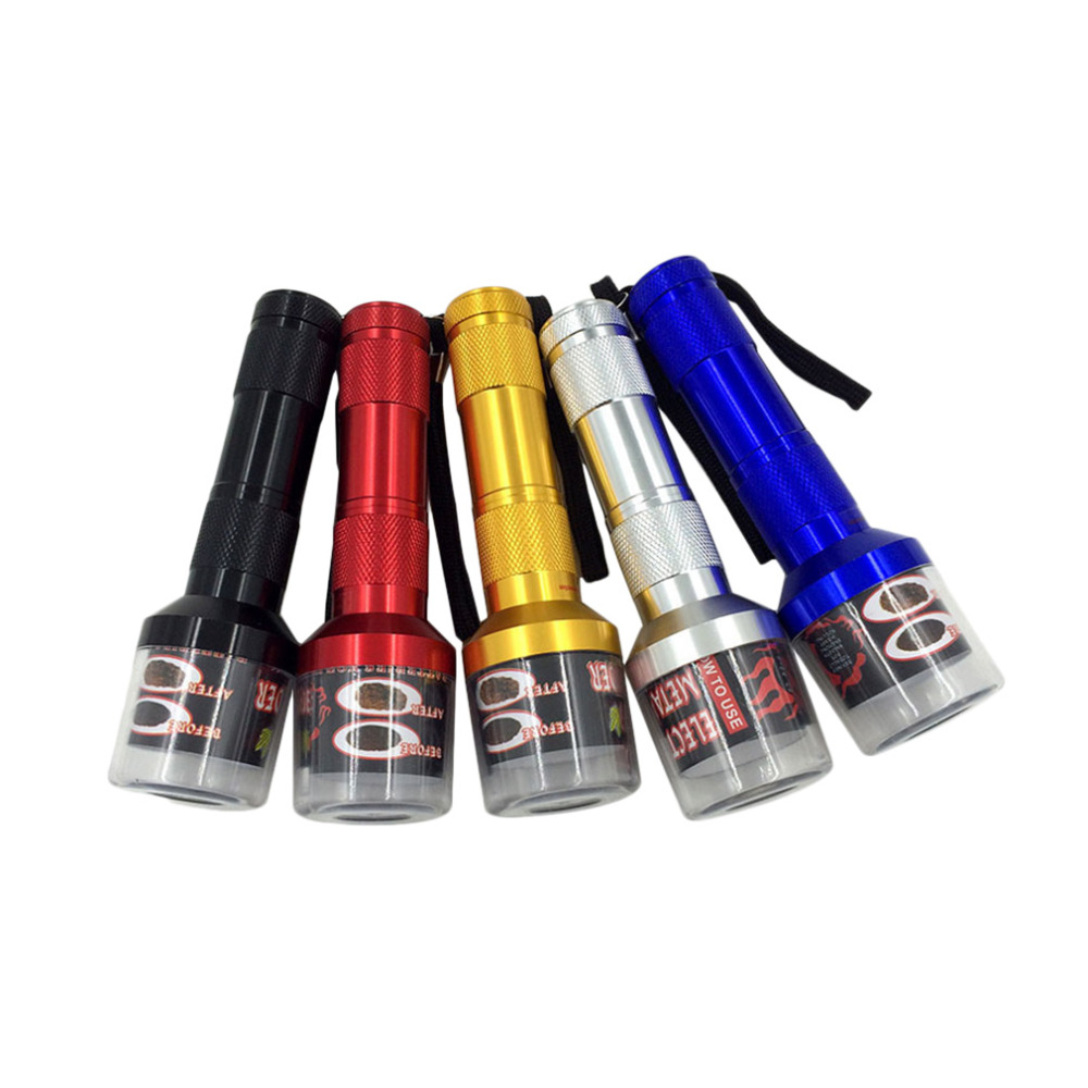 | Features: 100% brand new and high quality Quick and easy to use. Plastic Cap with Screw on ability Fast Metal Sharp Spinning TEETH Powered by 3x AAA Batteries ( not included ) Quietquick & simply smooth operation. Enjoy perfectly homemade items. Know exactly what is in your item. Specifications: Material: Aluminum Alloy Size( L x Head Dia. x Body Dia.):14.5 x 4.5 x 2.7cm Color: Black white blue red yellow. Color will be determined by random selection. Package includes: 1 x Grinder NOTE:This item come without retail box. |