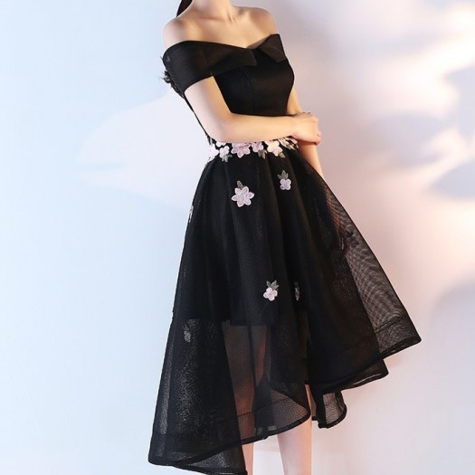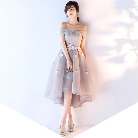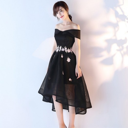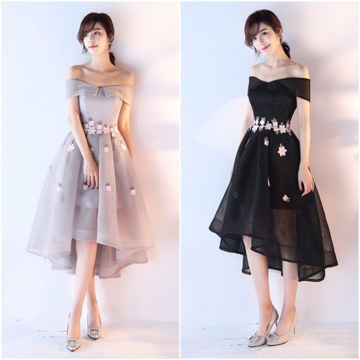 パーティードレス ミモレ丈 ワンピース オフショルダー フラワーモチーフ 刺繍 フィッシュテール 透け感 エレガント 上品 お呼ばれ drgz2683