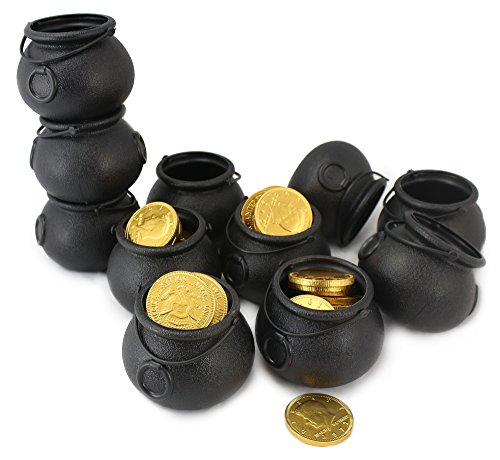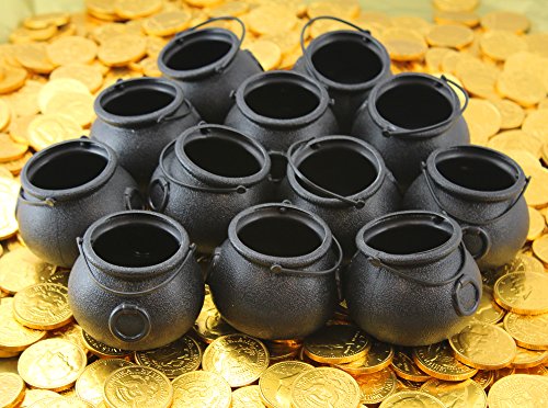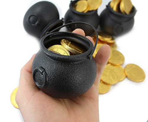 St Patrick 12 Mini Pot Of Gold And 1 LB Belgian Fort Knox Chocolate Coins For Paddy Day Cauldron Kettle Favors Decorations WellPackBox