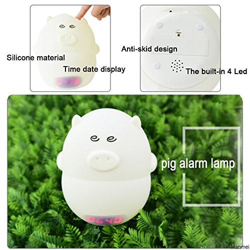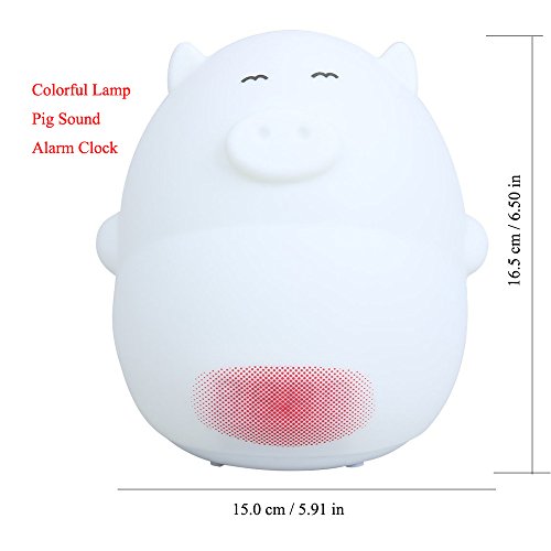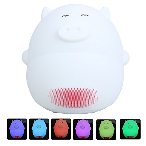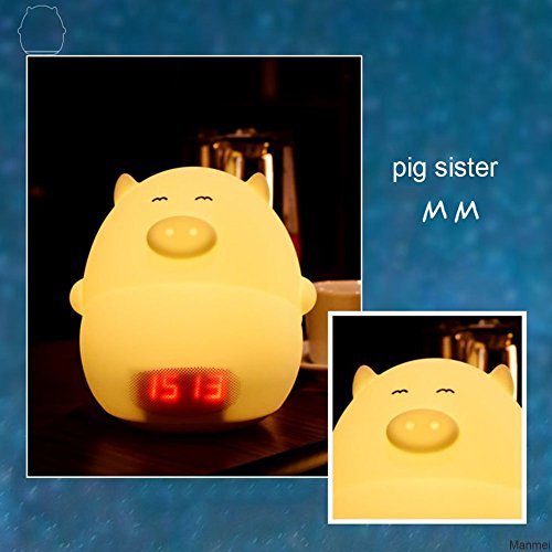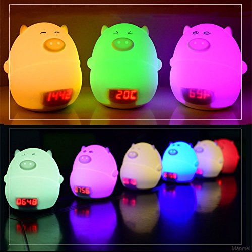 GUO Alarm Clock Night Light, Pig Soft Multicolor Silicone Wake Up Lamp,7-Color (Static,Flashing),2 Alarms,3 Sounds,Sensitive Tap Control,Temperature...