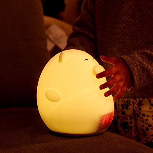 - Alarm: it can set two groups of alarm clock per day, can choose sound(three sound modes: big pig, little pig, di-di-di) + gradient change colorful light(light color changes every 3 seconds), pat lamp to stop alarm function; if no action, the sound and light will stay working for 5 minutes.