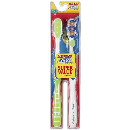 -. Title : Colgate 360° Toothbrush with Tongue Cleaner, Soft, Full Head, 2-Pack